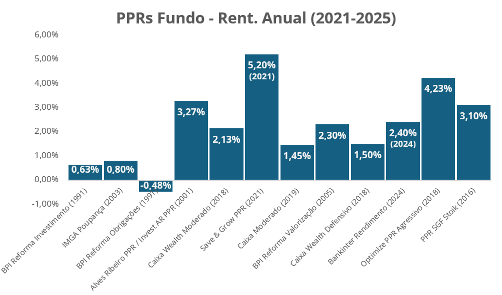 Deixo já a ressalva que a minha opinião é que investir em PPRs não compensa tanto como parece, porque os ETFs globais ou índices como o S&P 500 têm tido resultados bastante melhores nos últimos anos, com rentabilidades médias em alguns casos de 10% anualizados. Mesmo com benefícios fiscais, os PPRs têm sido piores que ETFs, e não são o meu primeiro conselho para FIRE; esta análise é só para matar a curiosidade.